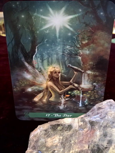 AeonHorus Posted January 24, 2020 Posted January 24, 2020 17 ~ The Star:~ A star burns ever so brightly above a crystal pure pool in the woodland on this frosty winters night. There is a beautiful Sidhe, wings glistening with the magick of the star, quite positively bathing in its starlight. In a truly enchanted fashion she pours water from her two chalices, one into her bowl the other back into the pool, giving meaning to that which we take we should replace, this one is for me and that one goes back to nature. Thus giving hope to future generations to come. The depiction of the Star just positively oozes a sense of alchemical magick coming into play here, for when we break down water into its base elements we get H2O, hydrogen and oxygen, both are also elements of the air that we breathe. Now there is reason behind this, and that reason is Aquarius! Aquarius unlike its name may suggest is not a water sign but an air sign and because of this fusion Aquarius is a chilled out soul with bright prospects ahead, quietly confident with an almost serene sense of tranquillity and optimism. All around the pool we see St. John’s Wort growing profusely showing that it offers us a powerful protection spell in all that we love and helps us to attain happiness in life. A goldfish jumps high out of the water and he obviously represents gold, wealth and prosperity in all that you would hope to achieve in life.