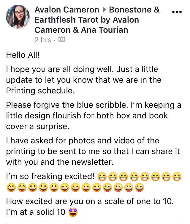 Raggydoll Posted June 13, 2020 Posted June 13, 2020 So there has been another newsletter and a new video. I have not had the time to watch the video but I am copying it all her so you don't miss out on anything. Bonestone Newsletter June 2020 Hello and Blessings beautiful souls, We are now in the final stages of the Bonestone. I had to change dispatch centres and so I am taking to my printer who has been kind enough to offer support to me since I have had a challenging time locking in the reliable dispatch centre. Right now, I am waiting on a quote from my printer. We are also talking about secure packaging options. Bubblewrap and a box are what we are looking at this stage. I am wanting a snug fit with very little movement. This latest update aside, this update is one that I am very anxious to put out. There has been some controversy surrounding the Bonestone that has made me sad. Yes, the Bonestone is one and a half years behind its estimated completion date and for I am sorry. I have created a video which I hope will help to explain why the Bonestone is so far behind schedule. This was a very challenging video to make as the subject is an emotional one. Needless to say, I am extremely anxious to be putting it out there for all to see. Please be kind, it was the hardest video I have ever had to make. https://youtu.be/xKBSdhTPVZU I want you to know that the Bonestone is still going ahead. I am still talking to the printer, we are sorting out the dispatch side of things and the projects continue moving forward. Thank you for your understanding. I truly appreciate your support throughout this project. It's a challenging time for many, please love each other and stay safe.