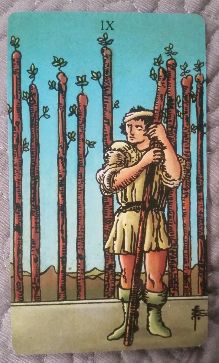 VioletEye Posted April 10, 2020 Posted April 10, 2020 (edited) On 3/23/2020 at 1:11 PM, 53rdspirit said: I kind of felt like this at the grocery store the other day (I often relate clubs/batons/wands as actual people/community/co-workers,etc.): YES! i was coming here to say the 9 of wands. actually, i did a reading a few weeks ago that ended up being about the virus (go figure), and i was using the deviant moon. the figure in the card is actually wearing a plague mask, and hiding out behind their fence of wands...! i had never put that mask in such a context before - and this was before everyone was wearing one. *edited to add: in the reading, i interpreted it less about social distancing than about self-quarantine/sheltering in place. Edited April 10, 2020 by VioletEye clarification