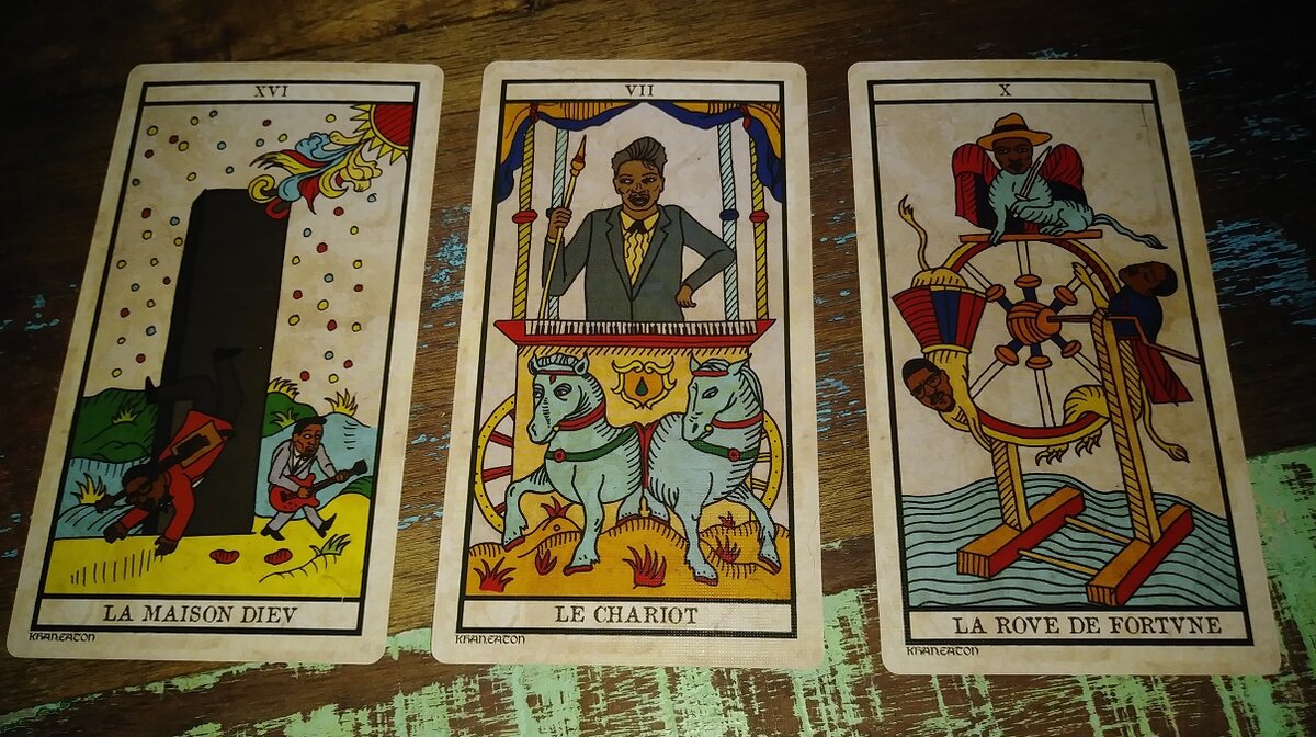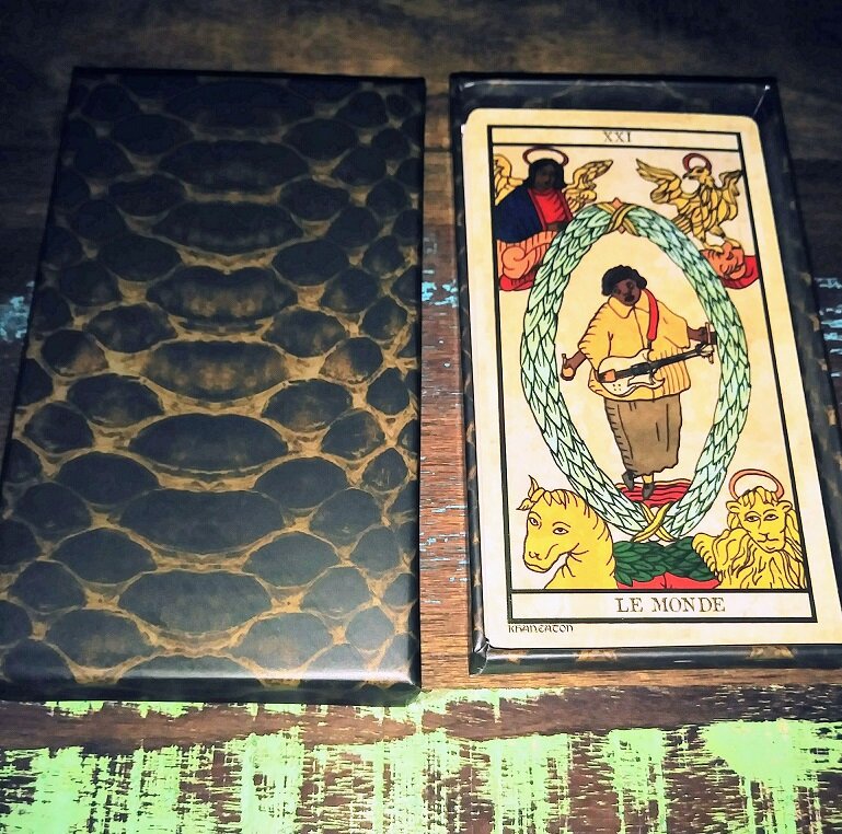 katrinka Posted June 29, 2020 Posted June 29, 2020 (edited) I just want to note that the Black Power Tarot arrived today in a little packet from Brooklyn. It comes in a sturdy box, the print quality is excellent, and it's linen. 💝 And besides all that, the first person I saw when I opened the box was Sister Rosetta Tharpe. Very auspicious! Here is a list of everyone on the cards: LE MAT - Fool - Richard Pryor I LE BATELEUR - Magician - Black Herman II LA PAPESSE - High Priestess - Marie Laveau III LIMPERATRICE - Empress - Nina Simone IIII L'EMPEROR - Emperor - Howling Wolf V LE PAPE - Pope - Rev. Johnny L. Jones VI LAMOUREVX - Lover- James Brown, Irma Thomas and Etta James VII LE CHARIOT - Chariot- Little Richard VIII LA JUSTICE - Justice - Eartha Kitt VIIII L'HERMITE - Hermit - Philip Kelan Cohran X LA ROVE DE FORTVNE - Wheel of Fortune - Three Malcolm X's: Malcolm "Detroit Red" Little, Malcolm X and El Hajj Malik El Shabazz XI LA FORCE - Strength - Tina Turner XII LE PENDU - Hanged Man - Tupac Shakur XIII - Death - HR from Bad Brains XIIII - TEMPERANCE - Temperance- Curtis Mayfield XV - Devil - Screamin Jay Hawkins XVI - LA MAISON DIEU - Tower - Chuck Berry and Bo Diddley XVII - L'ETOILE - Star - Alice Coltrane XVIII - LA LUNE - Moon - Billie Holiday XVIIII LE SOLEIL - Sun - Sun Ra XX LE JUDGEMENT - Judgement - Erykah Badu and Andre 3000 XXI LE MONDE - World - Sister Rosetta Tharpe Edited June 29, 2020 by katrinka
