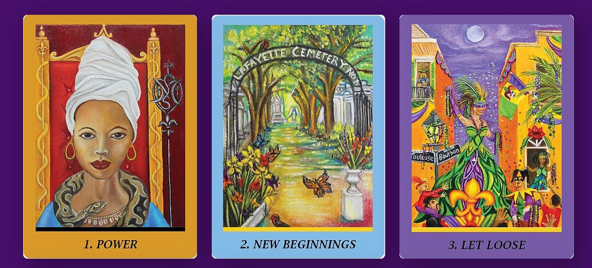 Raggydoll Posted June 30, 2020 Author Posted June 30, 2020 Thanks to the Little Red Tarots newsletter I was able to add two more decks to our list: Melanade Stand's tarot and the New Orleans Oracle deck The first one is a contemporary photographic tarot deck. I took a screenshot from the creators page so you can get an idea: The New Orleans oracle deck is completely different in style (also a screenshot from the creators site):