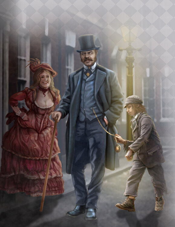 Several years ago I was requested by the German publisher of the original Kipper to redesign this deck. Despite its heritage and place in German cartomancy circles, its popularity, appeal and sales were dwindling. They wanted to inject some new life and style. After some initial doubts, I accepted the challenge on the condition I could transfer the setting of the original Kipper Karten from post Napoleonic war Bavaria, to Victorian Britain. I felt that the historical context of that era would provide a richer means of addressing the social conditions interaction and emotions that kipper deals with. As an example, the following is a summary of my thought process behind this particular card. BEHIND THE CARDS Explanation, perspective and context behind the images of past cards. In this case the THIEF from my Fin de Siècle Kipper deck. Charles Darwin's publication of Origin of the Species, and its radical proposal of man’s evolution from ape, was met with predictable outrage, not only by the church, but by society in general. However its rejection was an uncomfortable and incomplete, scientifically there was enough hint of possibility to the proposal, that it needed to be disproved by action not just debate. It has been proposed that a contributing factor to the extreme attitudes regarding sexuality of those times was in part an academic one rather than the more obvious religious one. It was argued that the indisputable factor separating Man from all other of God’s creation was that of “will” and control over instincts. Self discipline through self control over our basic animal instincts was that factor and indisputable when demonstrating the absurdity of Darwin’s provocative theories. However, this seemingly shallow logic along with supportive encouragement from the church, contributed to dictating the standards of social behavior between the genders, how they dressed, met and generally interacted. But scratch, and not too deeply, beneath the surface of that facade and there is clear evidence of not practicing what was preached. It is estimated that during this period there was a prostitute for every twenty men. The infectious scourge that we refer to as small pox was so named only as a means of differentiating and comparison to the "large" pox, namely syphilis, the true scourge of those times. (This real world reality and context is hinted at in my depiction of card 24, the thief)